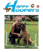 Bei Hoopers absolviert der Hund einen Parcours, der aus verschiedenen Geräten wie z.B. Tunnel, Tonne und Hoops besteht. Anders als beim Agility, läuft der Mensch beim Hoopers nicht mit. Er führt den Hund - aus Distanz - mit diversen Hör- und Sichtzeichen durch den Parcours. Damit der Hund einen Parcours ohne Fehler bewältigen kann, muss das Team gut aufeinander eingespielt sein.