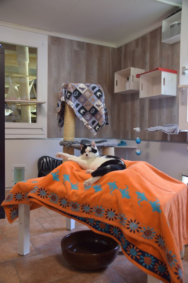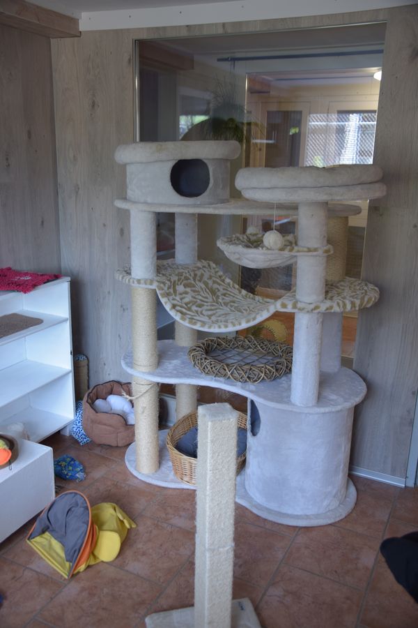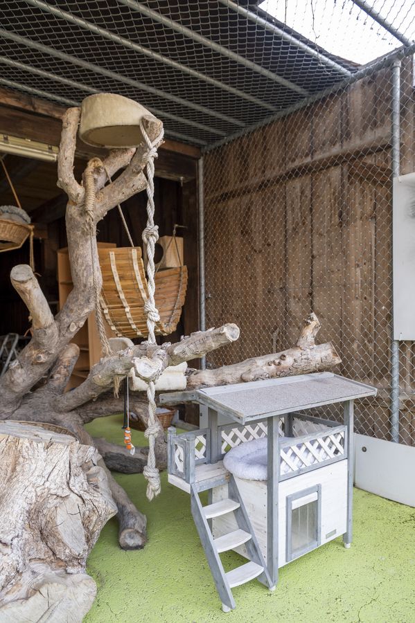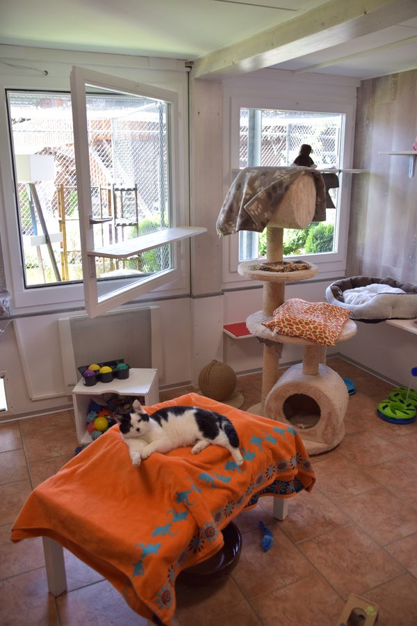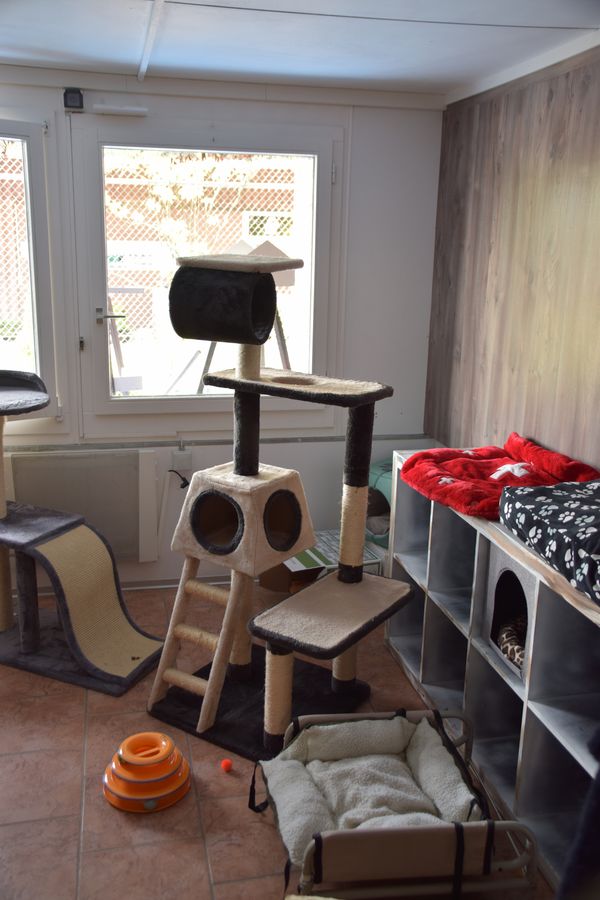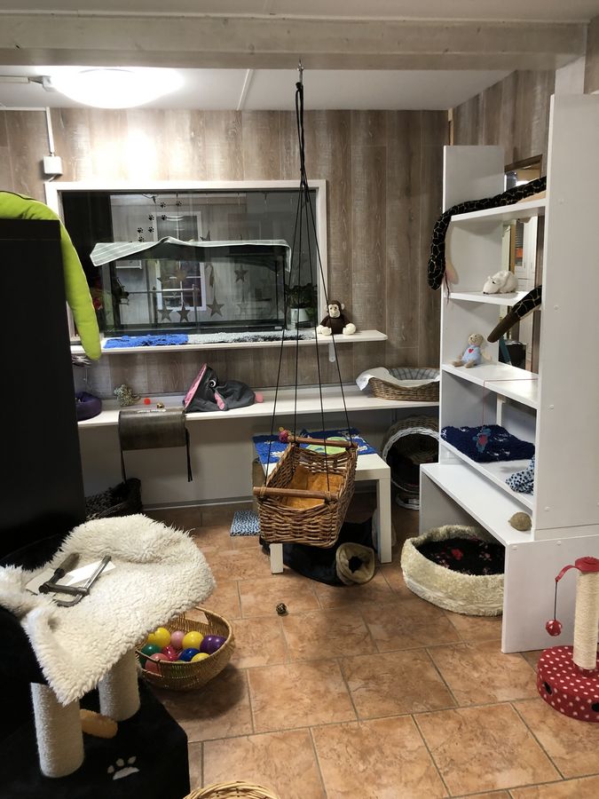 Nach einem kurzen Gesundheits- und Fellcheck stehen den Katzen drei Zimmer zur Verfügung, welche wir in harmonisierende Gruppen aufteilen. Jedes dieser Zimmer ist mit einem Innen- und Aussenbereich mit vielen verschiedenen Höhenlagen und Versteckmöglichkeiten ausgestattet. Die Zimmer sind beheizt und durch viele kuschelige Ecken zum Entspannen eingerichtet. Einzelhaltung ist nur gegen Aufpreis möglich.