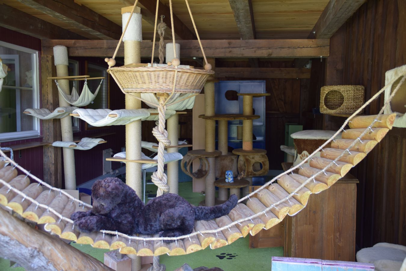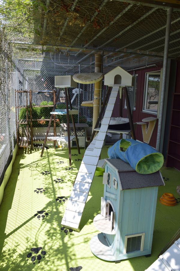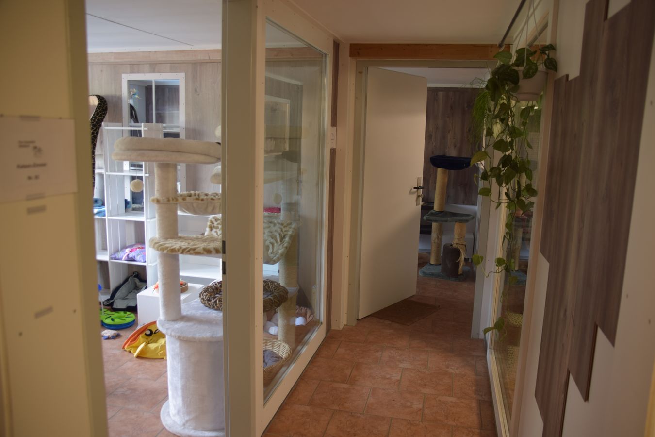Nach einem kurzen Gesundheits- und Fellcheck stehen den Katzen drei Zimmer zur Verfügung, welche wir in harmonisierende Gruppen aufteilen. Jedes dieser Zimmer ist mit einem Innen- und Aussenbereich mit vielen verschiedenen Höhenlagen und Versteckmöglichkeiten ausgestattet. Die Zimmer sind beheizt und durch viele kuschelige Ecken zum Entspannen eingerichtet. Einzelhaltung ist nur gegen Aufpreis möglich.