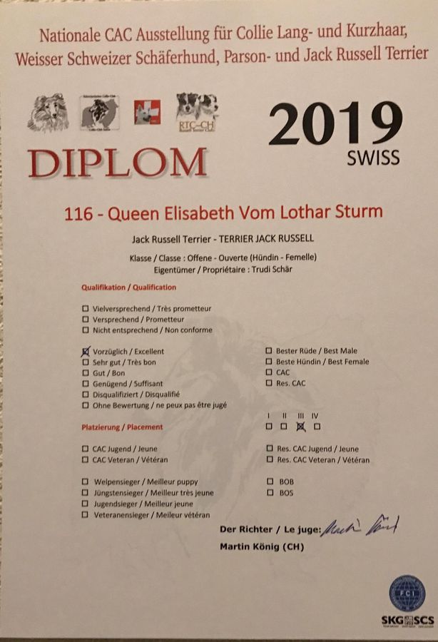 | 27.10.2019 | Clubschau Schinznach | Offene Klasse Vorzüglich 3 |