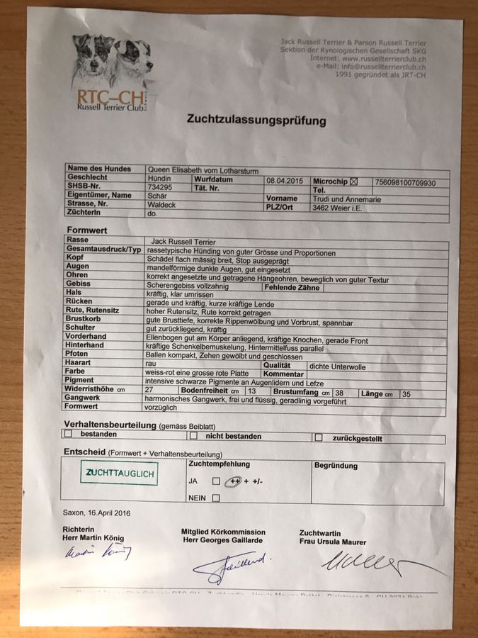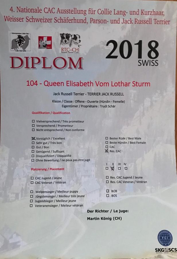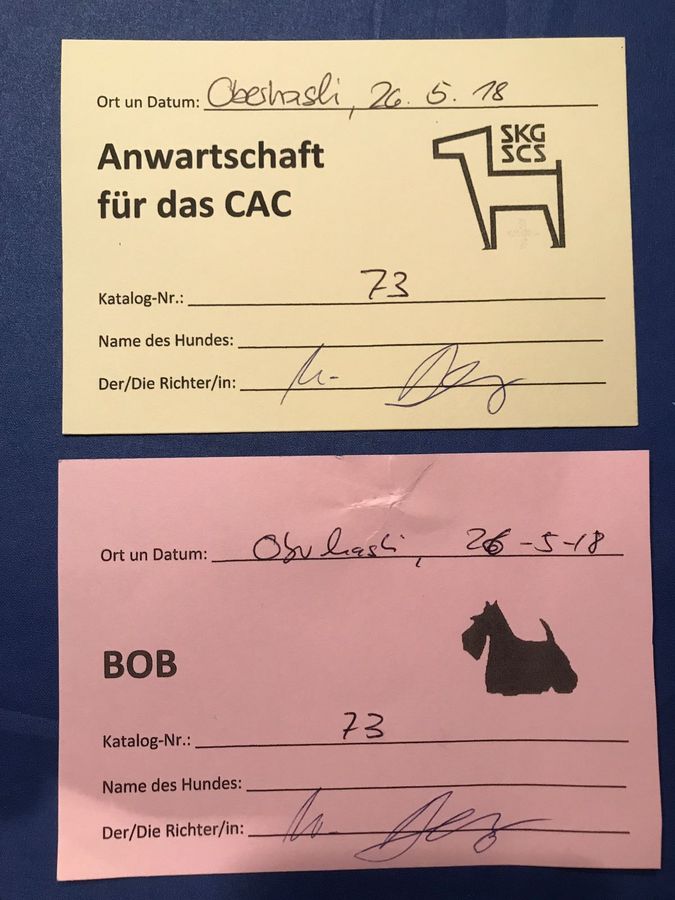 | 26.05.2018 | Terrier Ausstellung Oberhasli | Vorzüglich 1 CAC BOB |