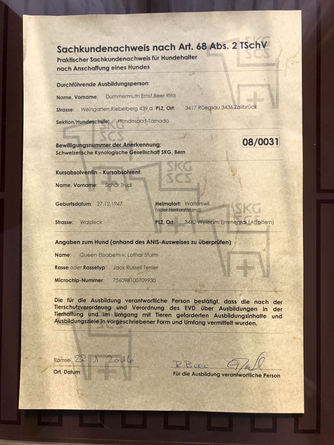 | 29.10.2017 | Clubschau Schinznach | CAC Paarklasse mit Wisper v. Lothar Sturm BIS-1 |